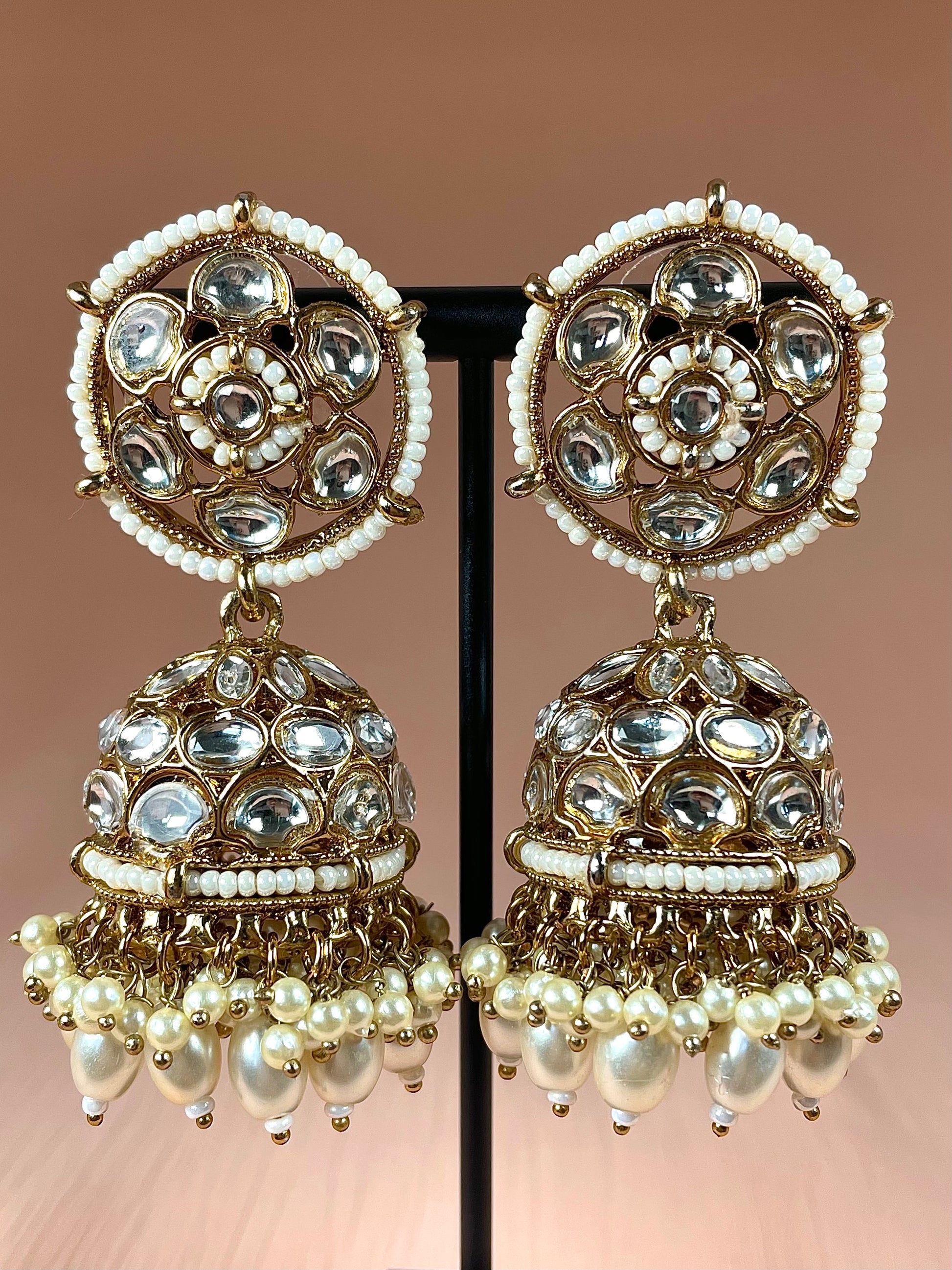 Aarini Jhumka Earrings are a luxurious and timeless statement piece, featuring gorgeous jhumkas with antique gold plating and pearl beads. These earrings will turn heads and are sure to make you stand out from the crowd.