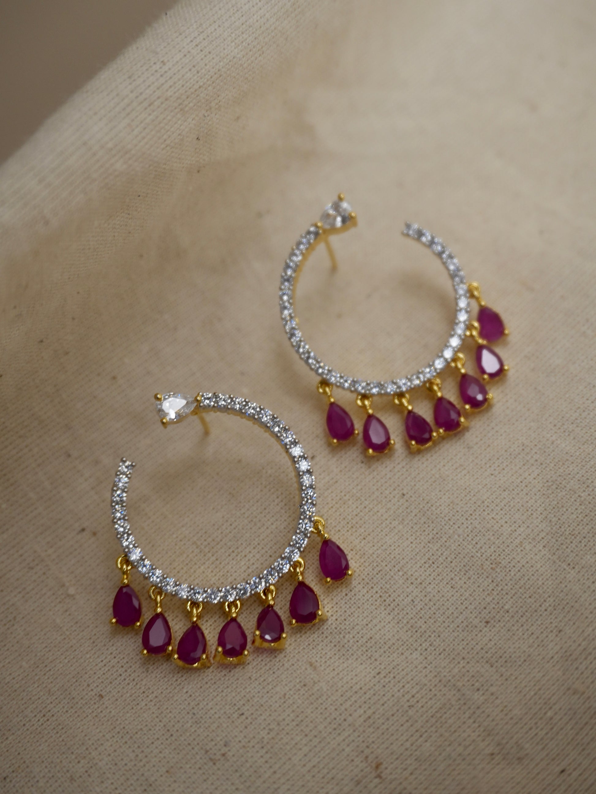 Elevate your style with Amiya Earrings. Minimal yet impactful, these earrings feature sparkling faux diamonds that guarantee shine and sparkle. The magenta pear drops and modern chandbali design add a touch of sophistication. Experience luxury in every wear.