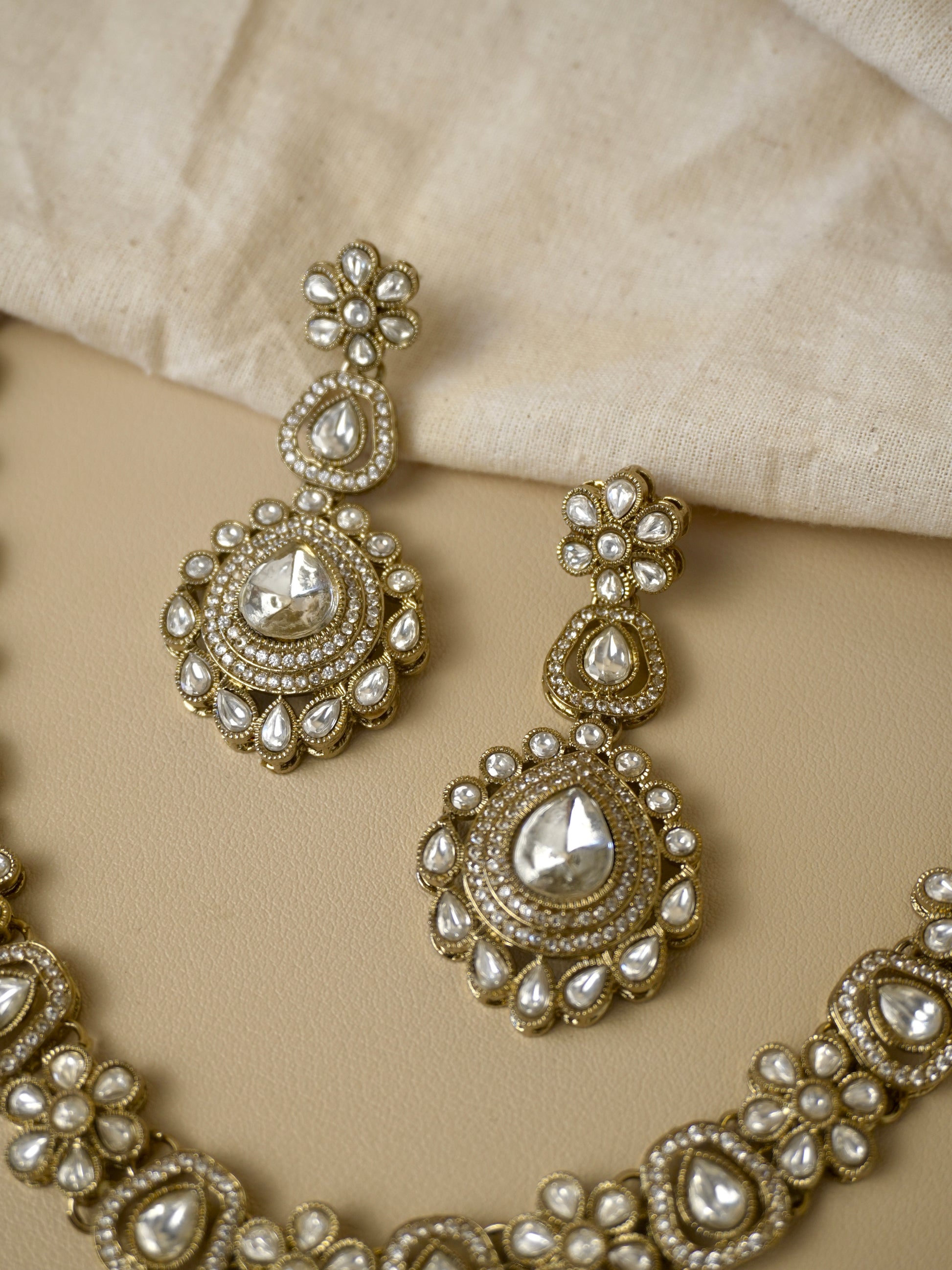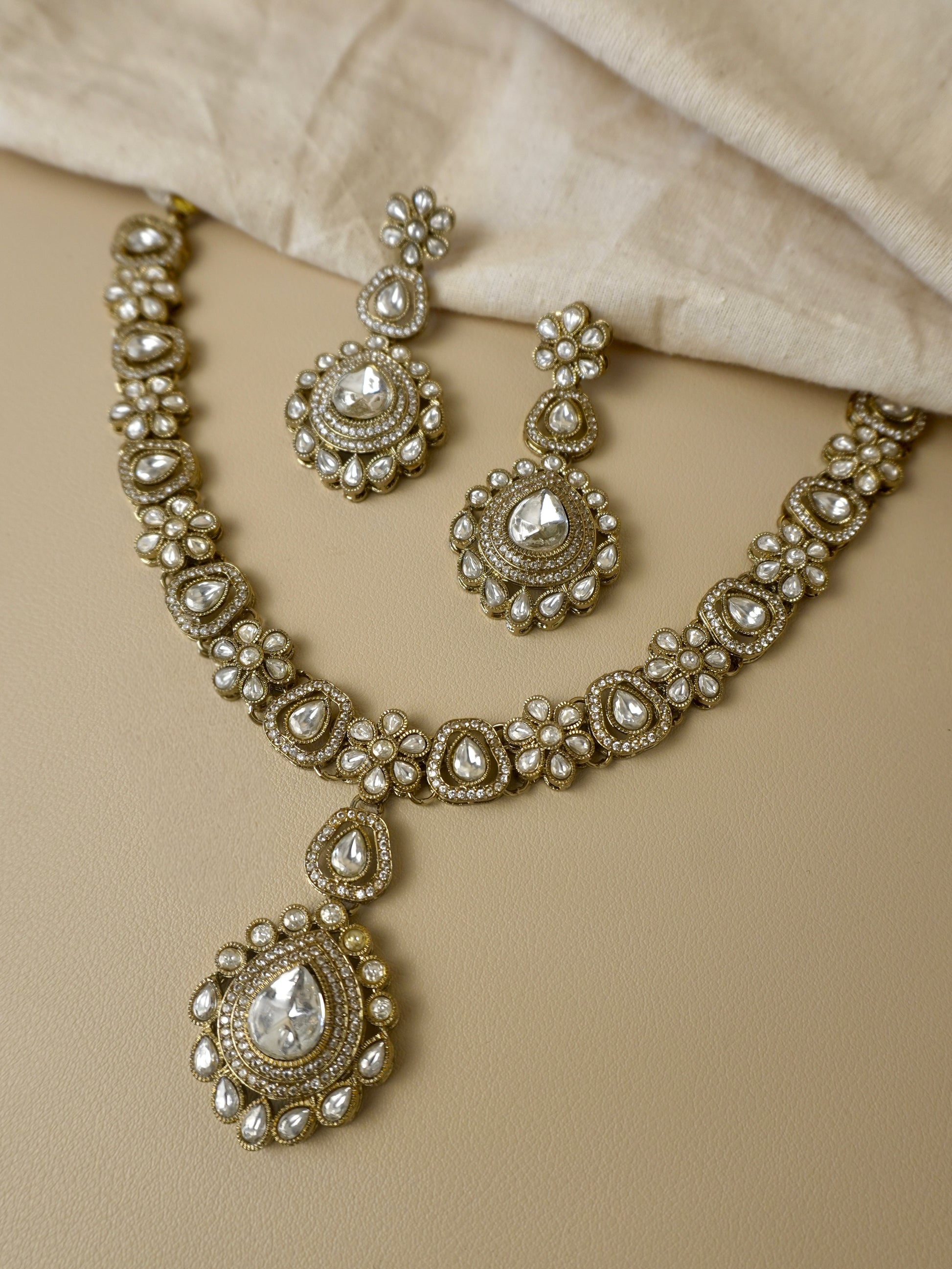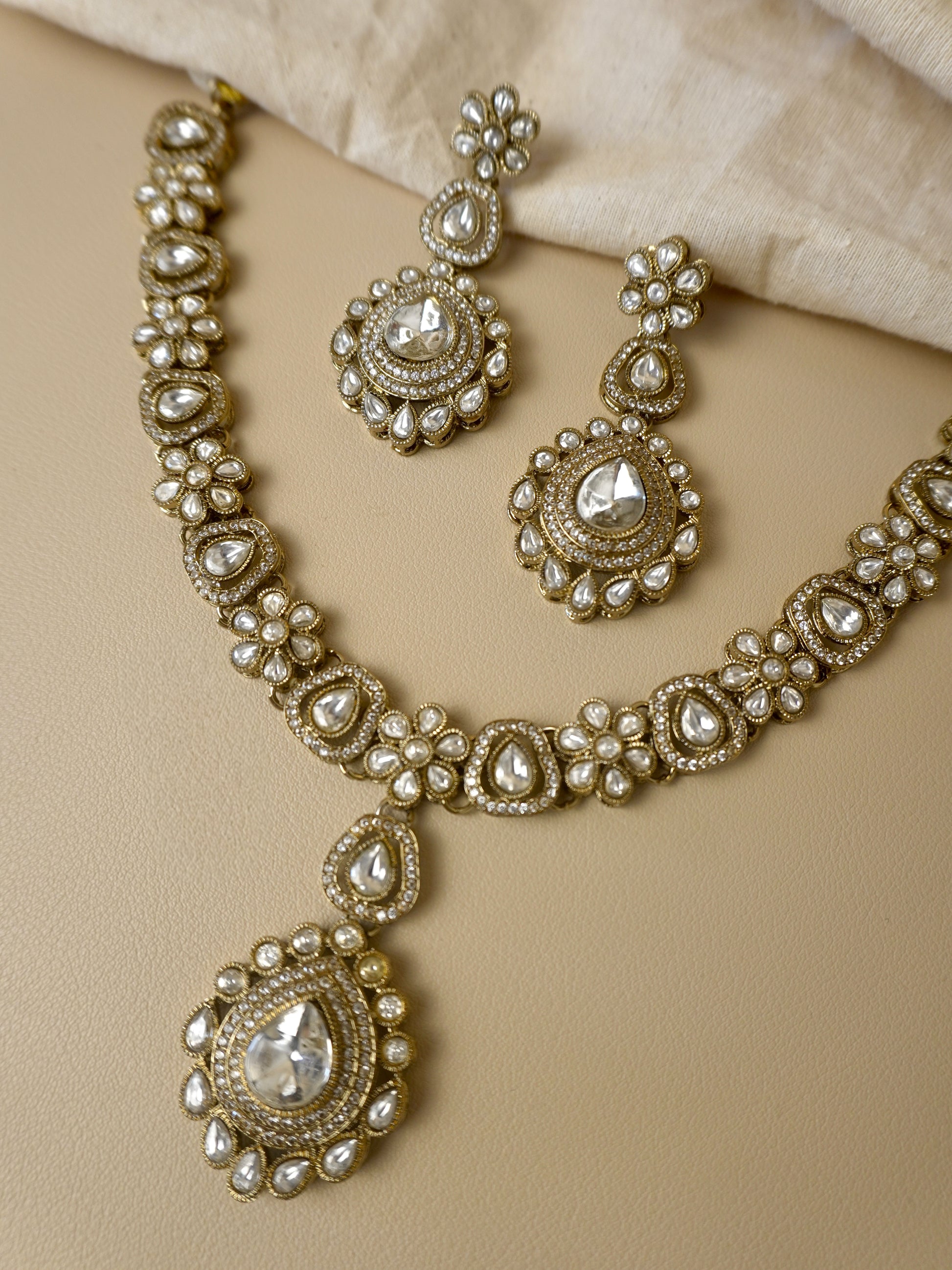 The Evanshi Necklace Set is just what you need to sparkle at any formal reception or evening event. Its delicate, lightweight drop pendant design floats beautifully, while the clever two-tone details mean you can mix and match it with both gold and silver.
