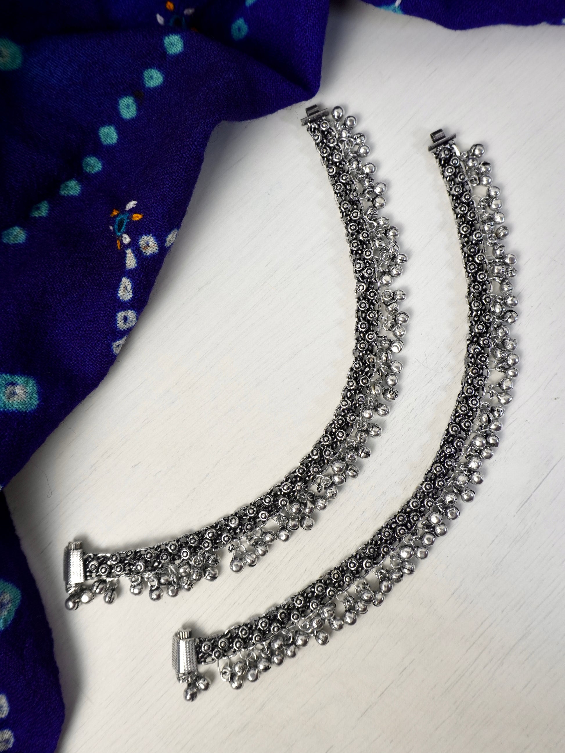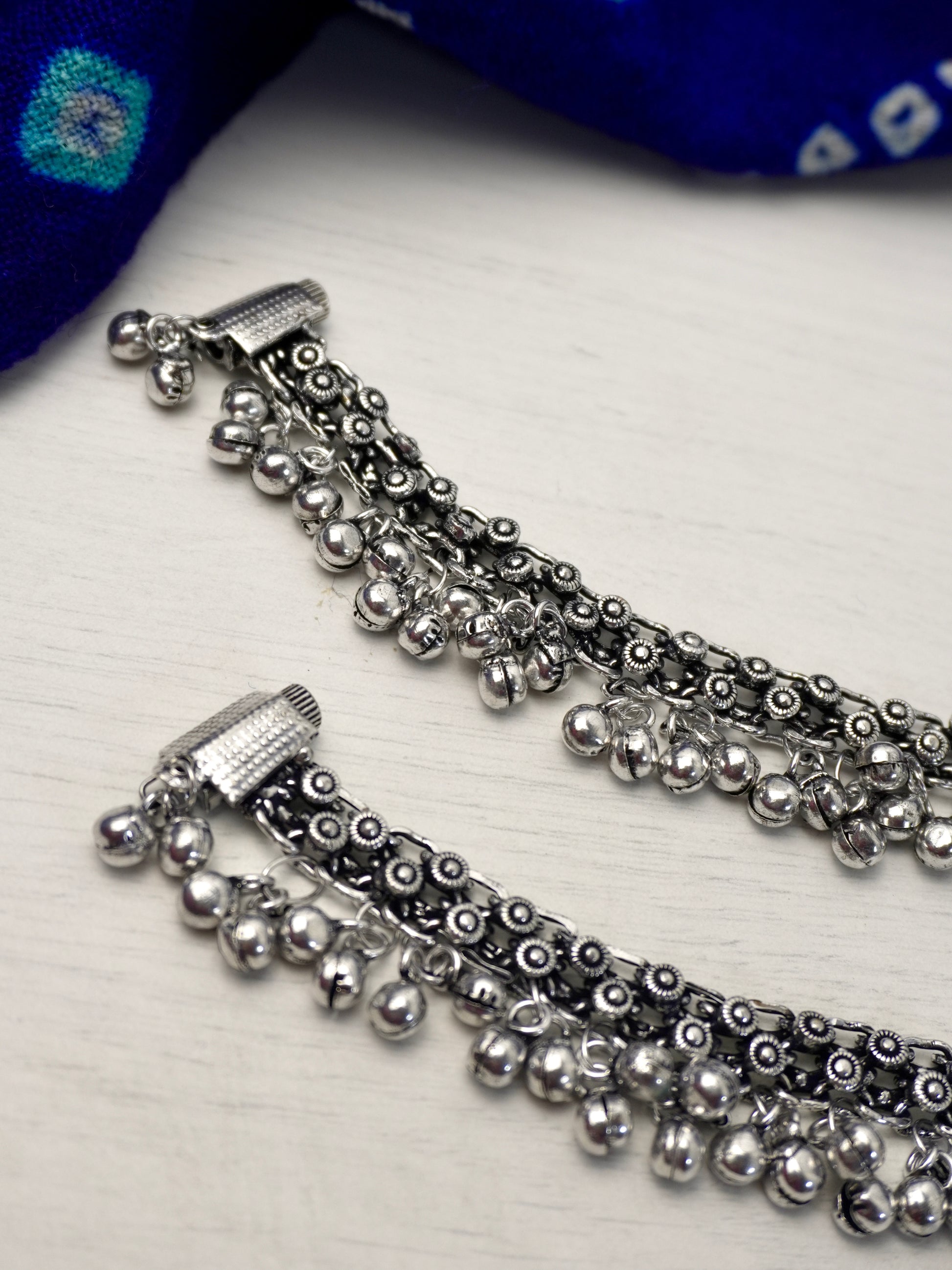 Step into rhythm with the Reva Oxidised Ghungroo Payal, designed to make every dance move sing! Crafted in a timeless vintage style, these traditional anklets create the most enchanting jingles, turning your steps into a captivating melody. Perfect for dancers who want their feet to steal the spotlight!