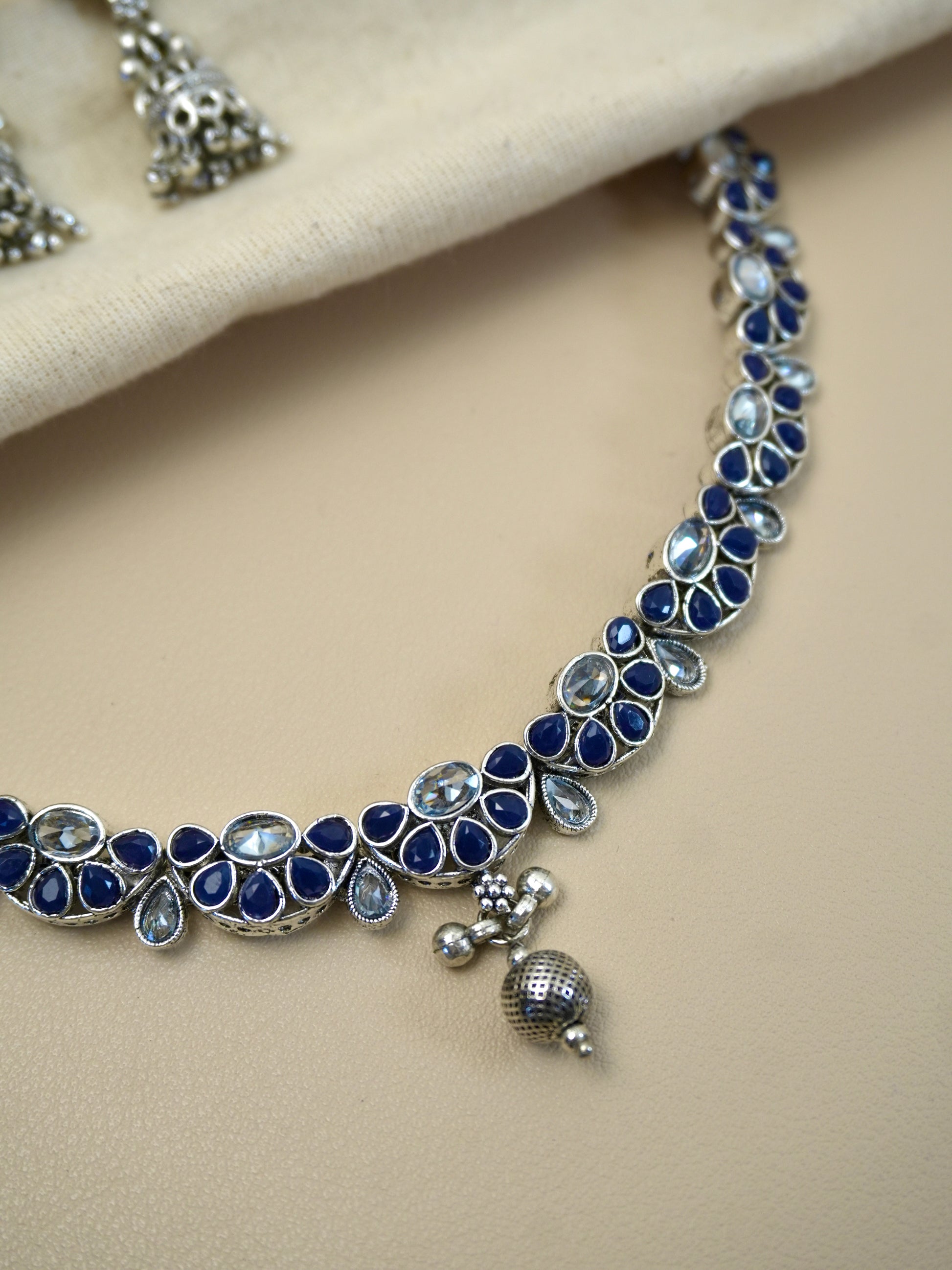 The Swati Oxidised Necklace Set is perfect for girls who love delicate and dainty jewellery. This simple, lightweight necklace set effortlessly blends elegance with everyday charm. Wear it solo or layer it for a cute, understated statement.